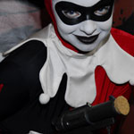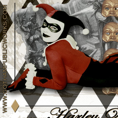 Harley Quinn (real name Dr. Harleen Quinzel) is a fictional character, a supervillain in Batman: The Animated Series and its spin-offs, and subsequently in various Batman-related comic books. As suggested by the name, she is clad in the manner of a traditional harlequin jester. Her name is a pun on Harlequin.