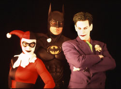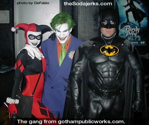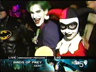 Oy, what a week! Well, as hopefully most of you caught, we got our mugs plastered all over TV at the premiere party, and Mistah J bent the crowd to his will with his winning smile and won the costume contest (in his regular, everyday suit, no less!) and a walk-on role on "Birds of Prey"! Plus a bunch of websites have been sweet enough to spread the word. Check out www.gothamclocktower.com, www.comics2film.com, and the yahoo group DC Live Action Universe for starters. And thanks to them for their awesome sites and for helpin' us milk this thing for all it's worth!